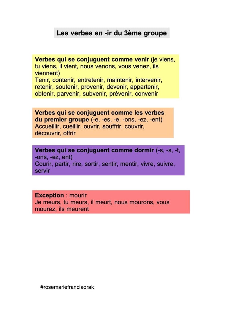 Les verbes du 3e groupe en -ir se divisent en trois catégories :